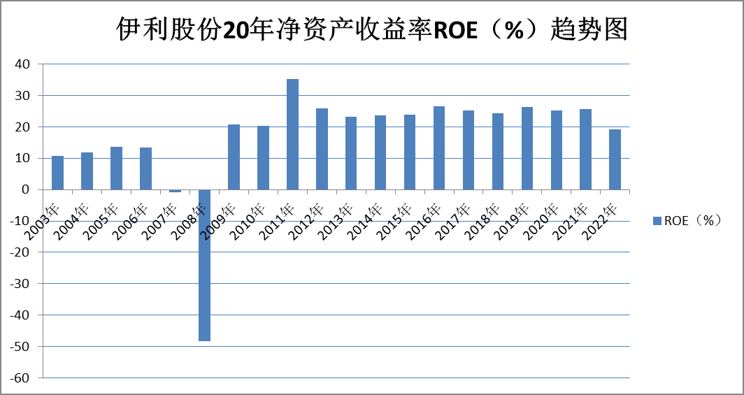 2008年份ROE为负数。从2009年-2022年,ROE均大于19%。