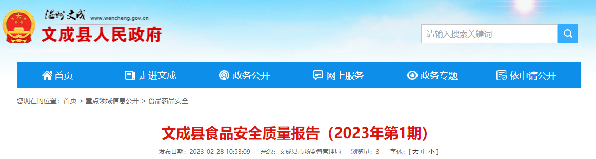 2023年文成县市场监督管理局食品安全监督抽检情况